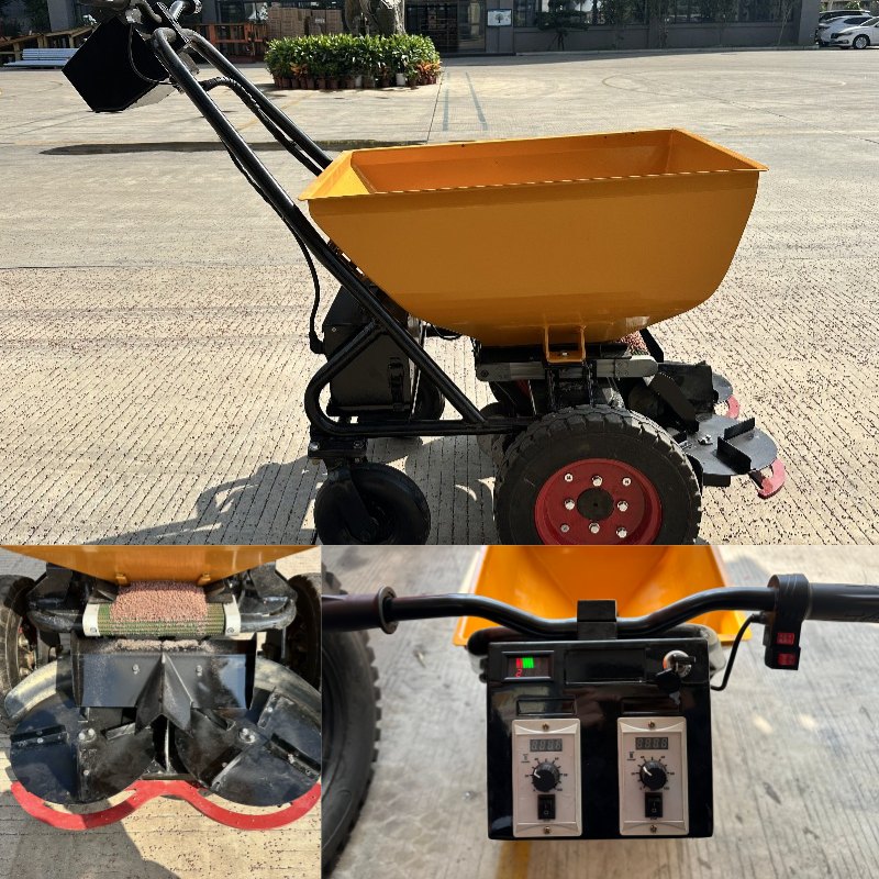 Core components: It includes a large fertilizer container (such as a yellow or orange container) that can hold a large amount of fertilizer; below it is equipped with an efficient conveying device and fertilizer spreading components to ensure even distribution of fertilizer.