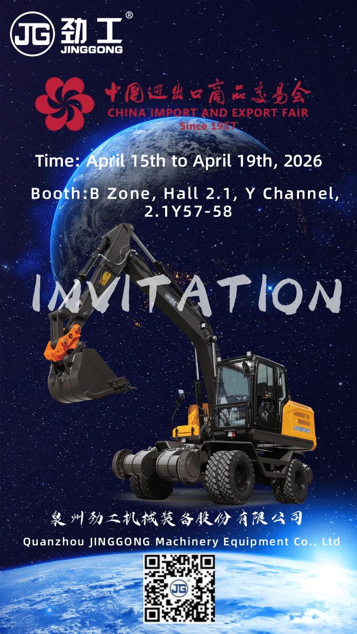 Quanzhou Jinggong Mechanical Equipment Co., Ltd. sincerely invites you to attend the China Import and Export Fair (Canton Fair) to be held in Guangzhou, China from April 15th to 19th, 2026. This is an important showcase platform for our company, where you will have the opportunity to visit the site and learn about our latest excavator products and technological innovations. Our booth is located in Zone B, Hall 2.1, Y Passage 2.1Y57-58. We sincerely invite you to come and visit, communicate and experience the outstanding performance of our products.