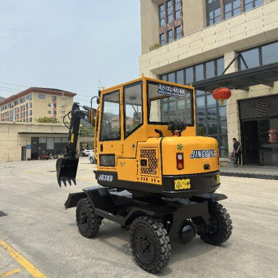 Маневренность: Колесные мини-экскаваторы обладают высокой маневренностью, что позволяет им работать в стесненных условиях и объезжать препятствия.